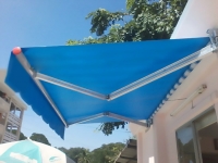 Lắp Mái hiên di động cho quán cafe vừa tạo kiểu vừa che nắng mưa, vừa làm chỗ để xe rất tốt